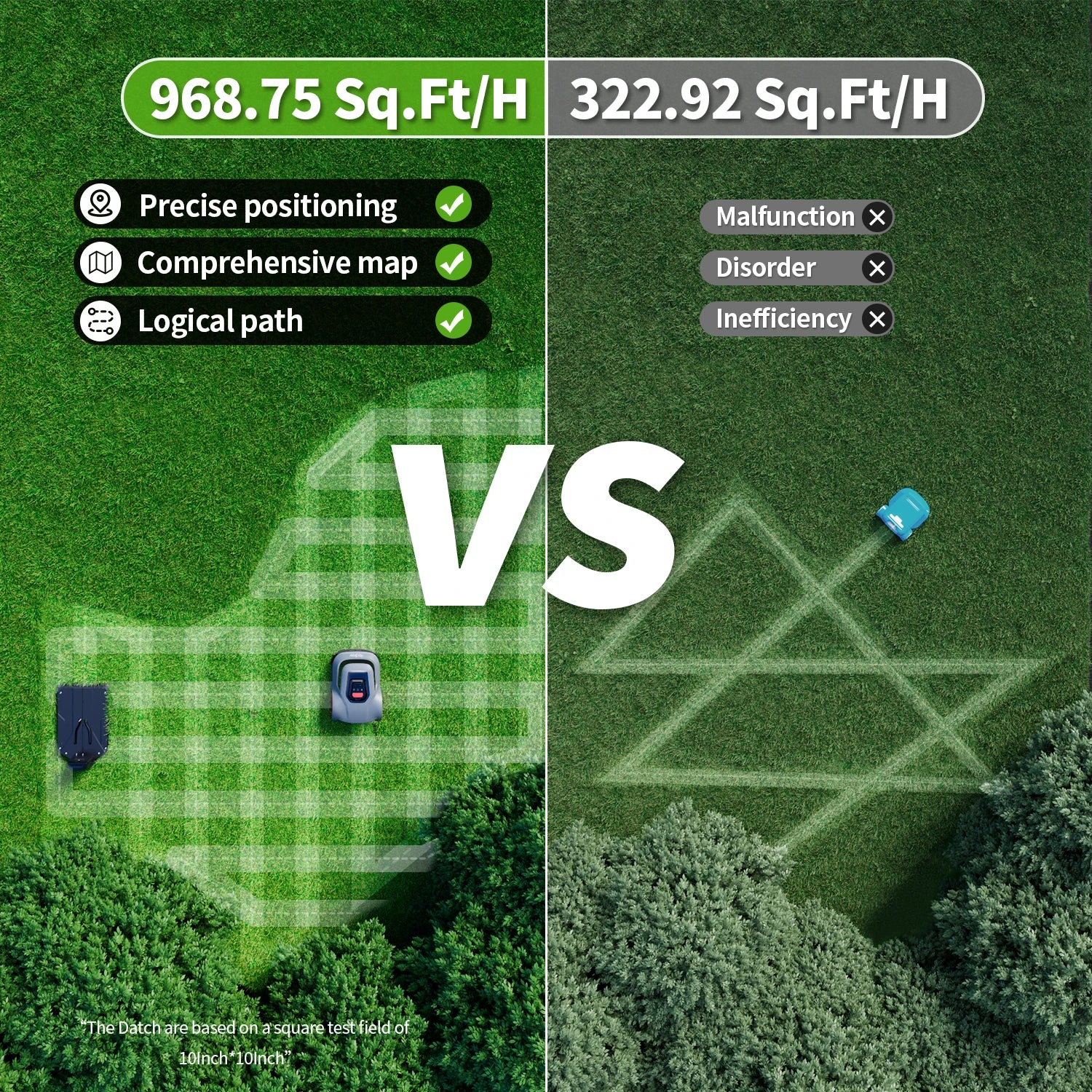 - C-TOF navigation with real-time app mapping lets you plan custom mowing sessions and watch progress, delivering up to 100 m²/h (3X faster than traditional robotic mowers).